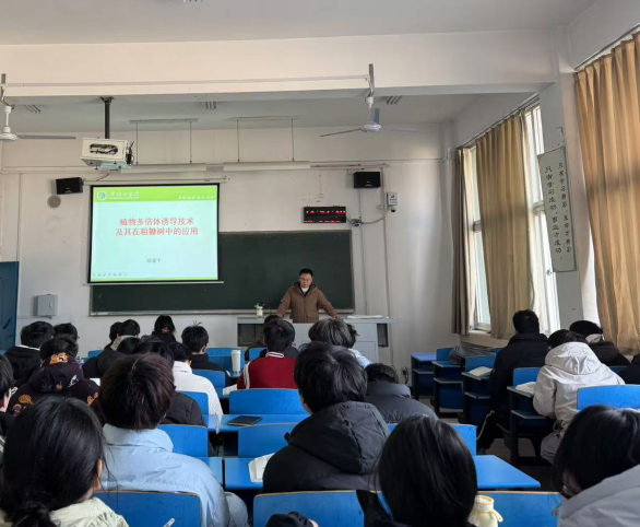 2024年12月18日下午,tyc234cc 太阳成集团耿喜宁博士在4号教学楼4105教室举办了学术讲座,报告题目为《植物多倍体诱导技术及其在粗糠树中的应用》,太阳成官网2023级环境生态工程专业的学生聆听了本次报告。